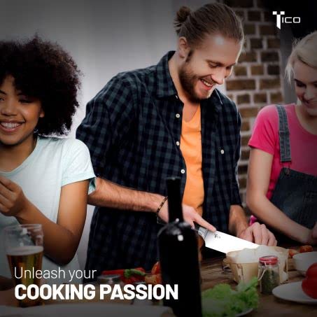 Be the first to review “TICO Ultra Sharp 8 inch Chef’s Knife – German Carbon Steel Blade, Ergonomic Pakka Wood Handle – Professional Kitchen Knife for Chopping, Cutting, Thinly Slicing Meats & Vegetables”