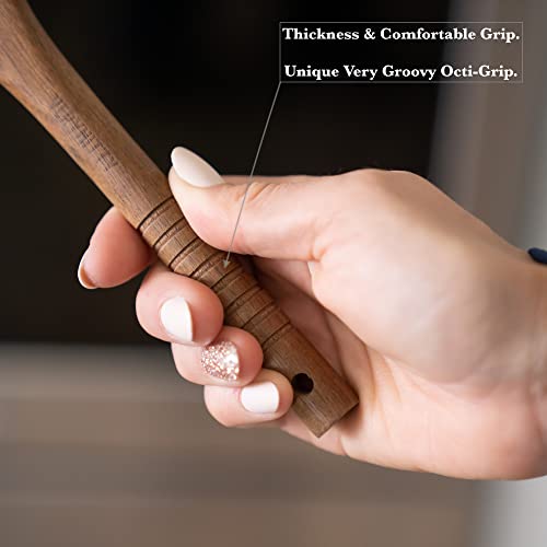 - 👌🏼Feels Good To Use: Each wooden spoon and wooden spatula has a thick handle with our unique Very Groovy Octi-Grip so your serving utensils are more satisfying to hold. We know, we tried 5 different kitchen spatula, mixing spoons and cooking spoon handles! 2.5-3.0oz lightweight yet solid wood utensils.